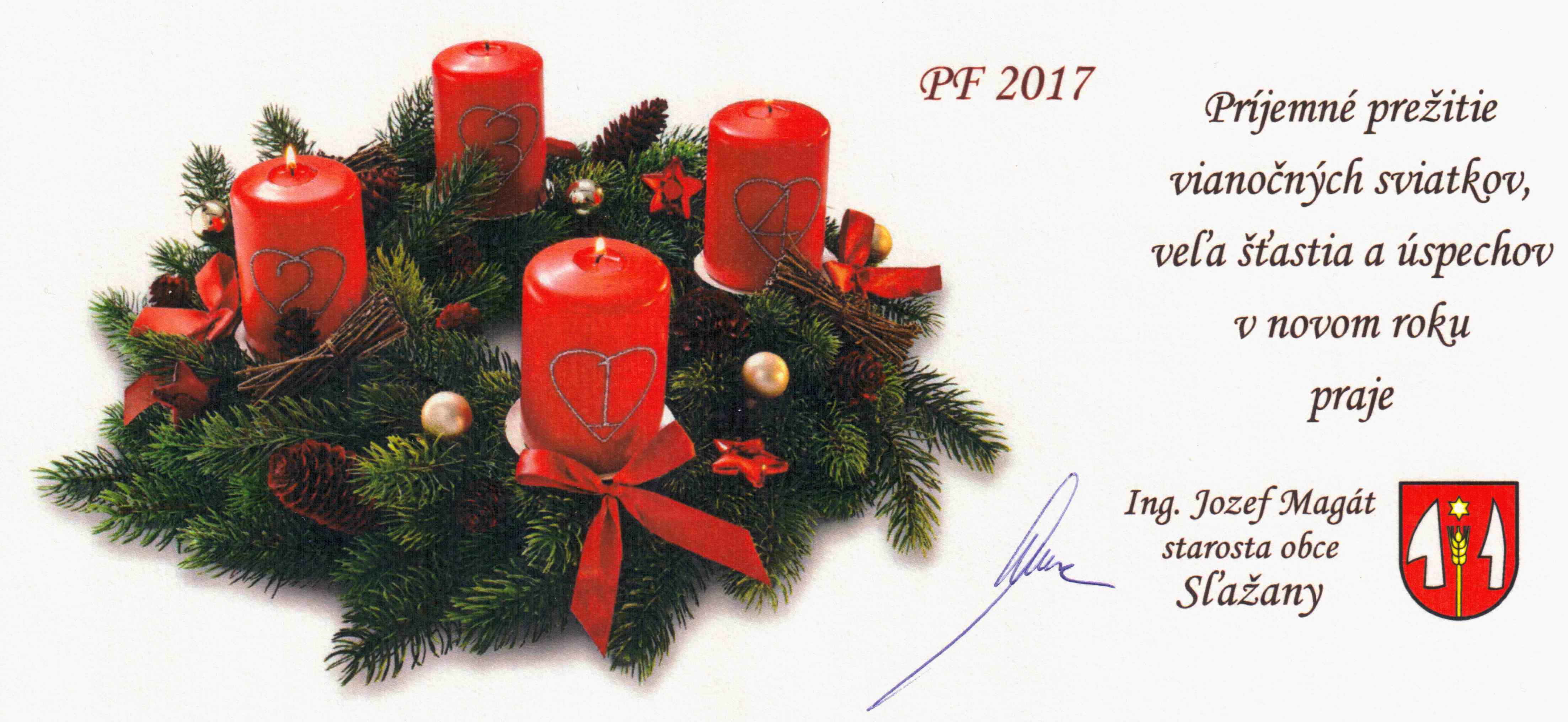Ešte raz Vám srdečne ďakujem v mene svojom, ako aj v mene poslancov Obecného zastupiteľstva v Sľažanoch.